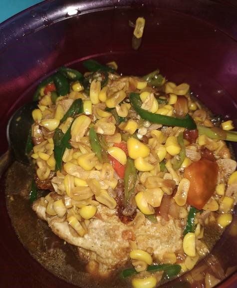 Pastikan jagung sudah matang, baru masukan telor yang sudah diceplok tadi. Aduk hati-hati. Icip-icip rasa.