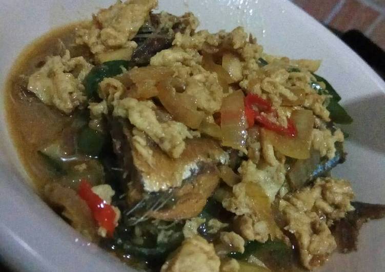 Iris bumbu2 lalu tumis setelah harum masukan ikan dan air secukupnya. Tambah kecap dan gula..setelah mendidih tambah telur kocok.. aduk rata dan biarkan nyemek cicipi yah..