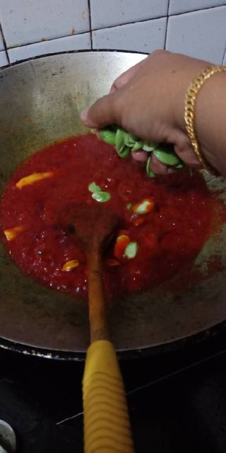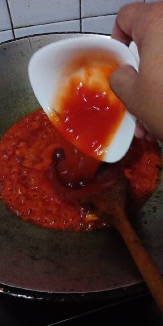 sudah agak kering masukkan sambal cabai dan sambal tomat