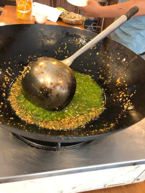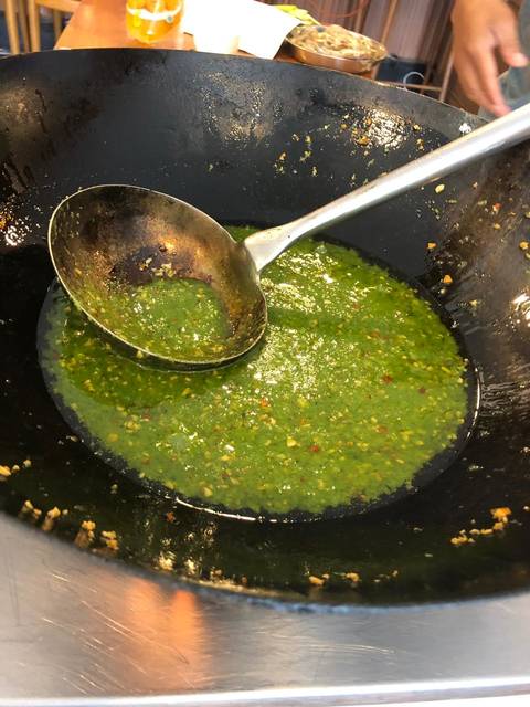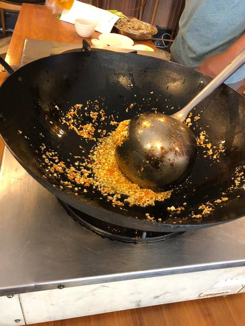 Tumis bawang putih cincang hingga harum. Masukkan cabe rawit.