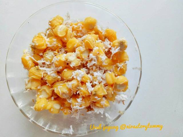 Campurkan jagung dan kelapa, lalu bumbui dgn garam