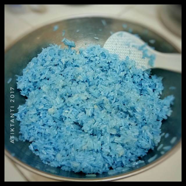 Tuang air biru nya dibaskom, lalu masukkan ketan yg setengah matang. Aduk sampai bener2 rata. Kukus ketannya kembali kurleb 30menitan.