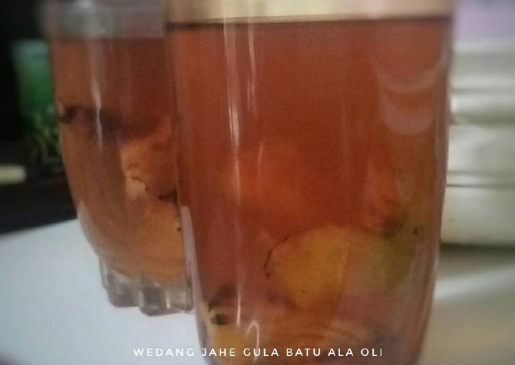Masukkan gula batu, lalu tuangkan air jahe. Taraaa wedang jahe siap diminum.