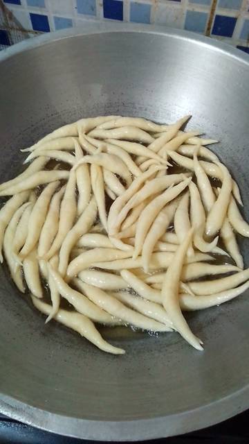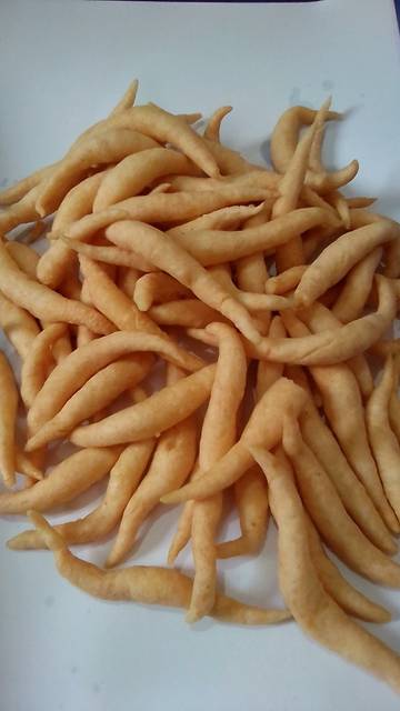 Ayak tepung terigu, tambahkan garam dan kaldu bubuk aduk2 sampai rata. Masukkan kocokan telur, aduk2 dengan spatula kemudian tambahkan margarin, uleni sampai kalis/tidak lengket.