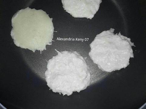 4. Panaskan pan, lalu kecilkan dgn api lilin cenderung kecil.. tuang 1Sdm adonan (tanpa dioles mentega / minyak), balikan adonan jika sudah kecoklatan, sampai 2 sisi matang merata
