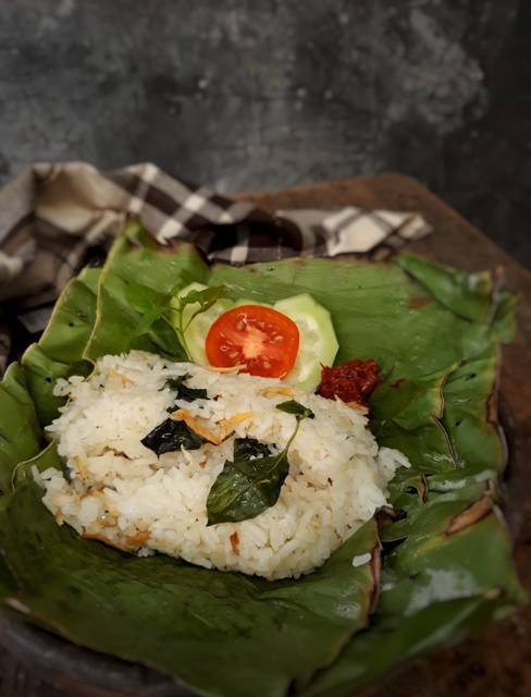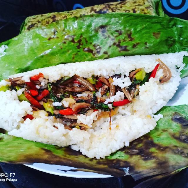 Bahan-bahan 1 piring nasi 1 genggam teri goreng 4 buah cabe hijau besar 5 buha cabe merah 9 buah cabe rawit 1 papan pete 5 bawang merah 4 bawang putih Segenggam kemangi Daun pisang Minyak untuk menumis Langkah Iris semua bahan dan tumis sampai harum. Tambahkan gula garam dan kaldu...
