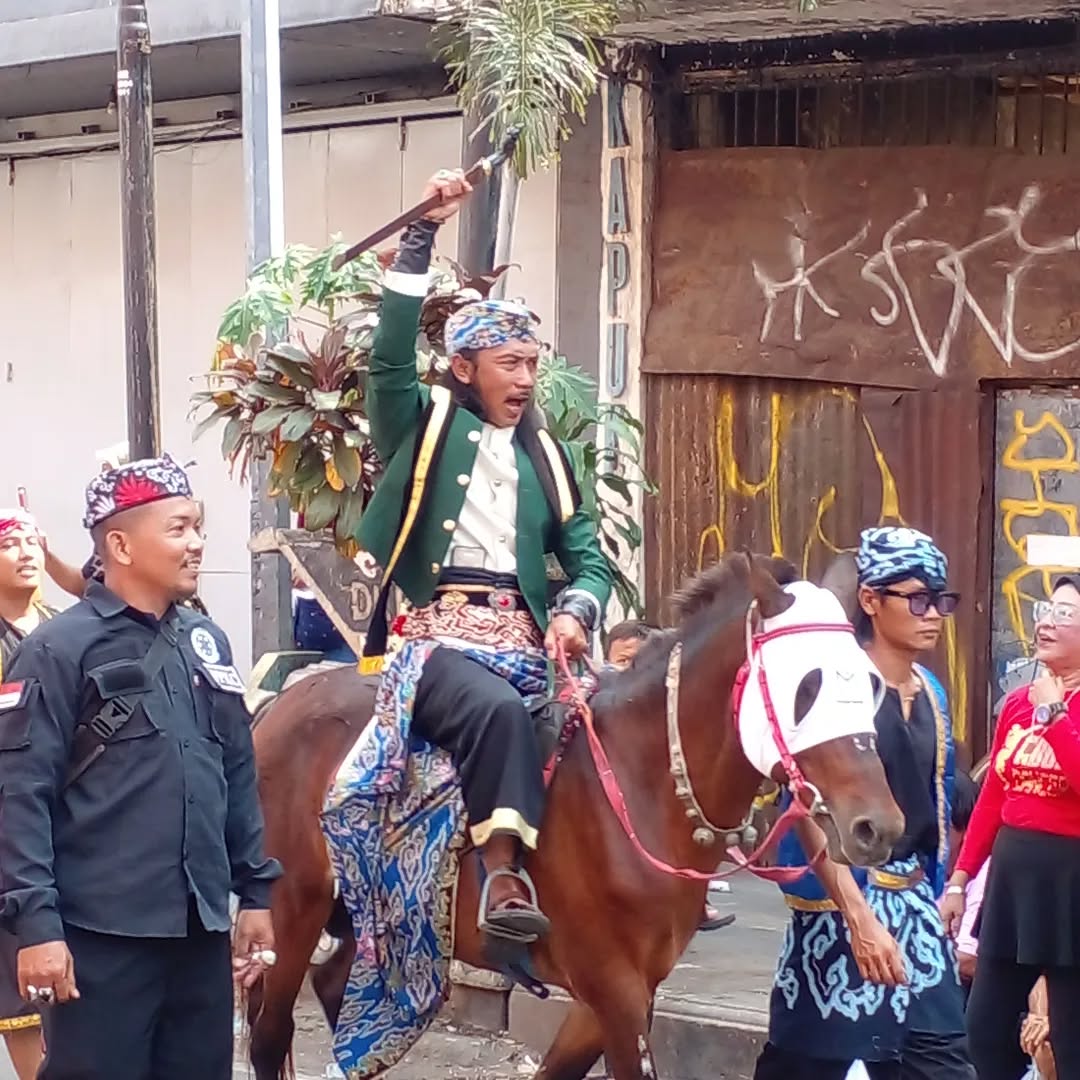 aksi pertunjukan pusaka dan pasukan kesultanan kacirebonan dari balaikota cirebon sampai ke keraton kacirebonan